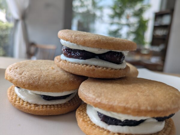 藤稔の自家製セミドライレーズンのレーズンバターサンドを。