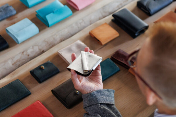 「ポケットに入る小さな財布がほしい」と店頭で